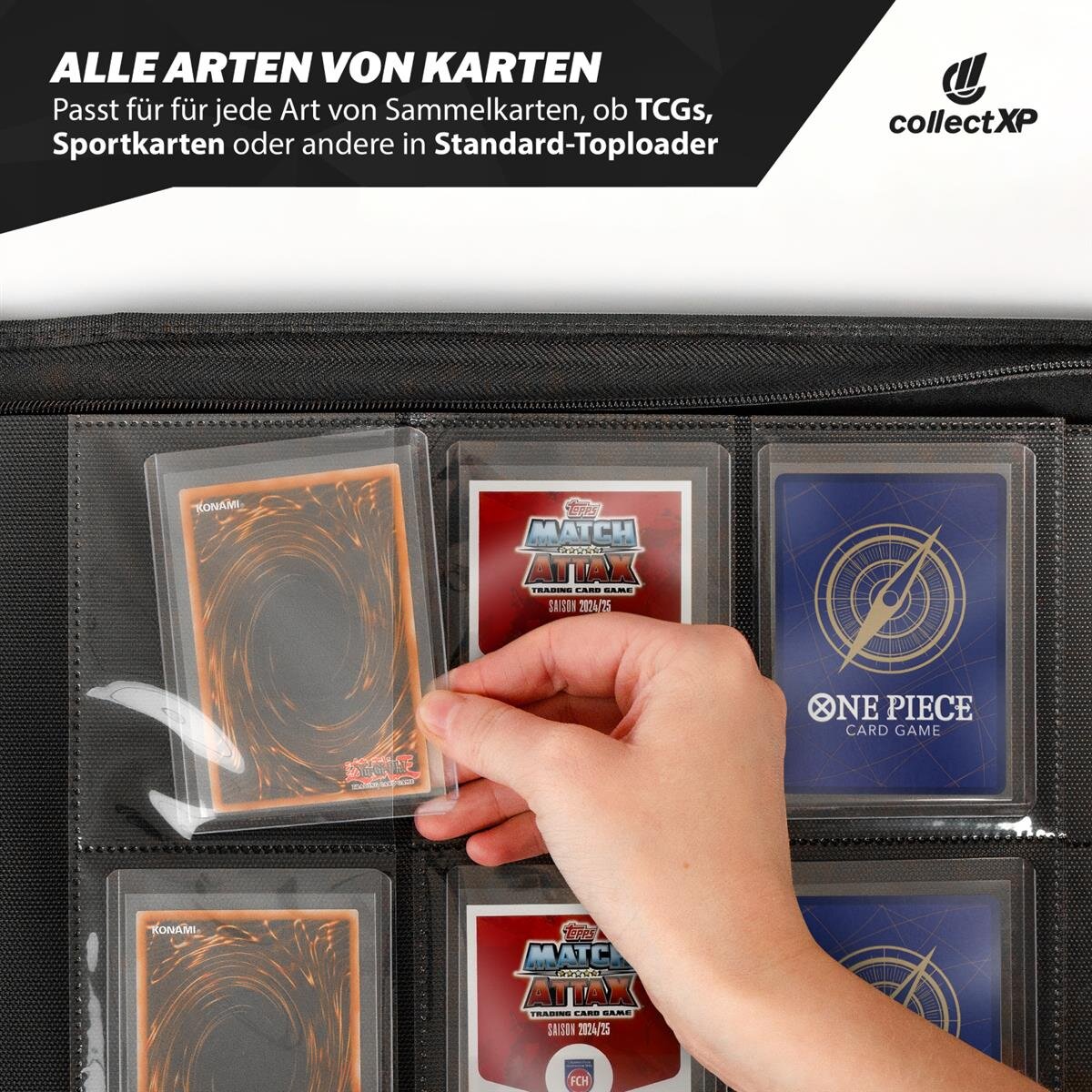 collectXP Top Loader Album: Der ultimative Schutz für deine Sammelkarten Das collectXP Toploader Album ist die ideale Lösung, um deine wertvollen Sammelkarten sicher, übersichtlich und bequem aufzubewahren. Mit einer perfekten Passform für Standard-Toploader in der Größe 3 x 4 Zoll bietet dieses Album optimalen Schutz und sorgt dafür, dass deine Karten immer in makellosem Zustand bleiben.