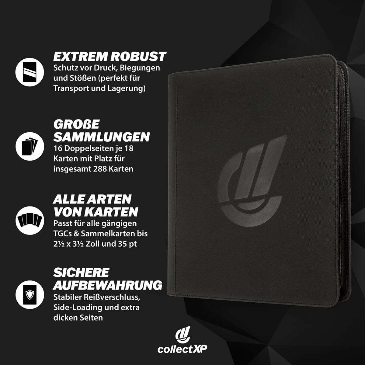 Produktinformationen "collectXP 9-Pocket Zippered Toploader Binder Black"
