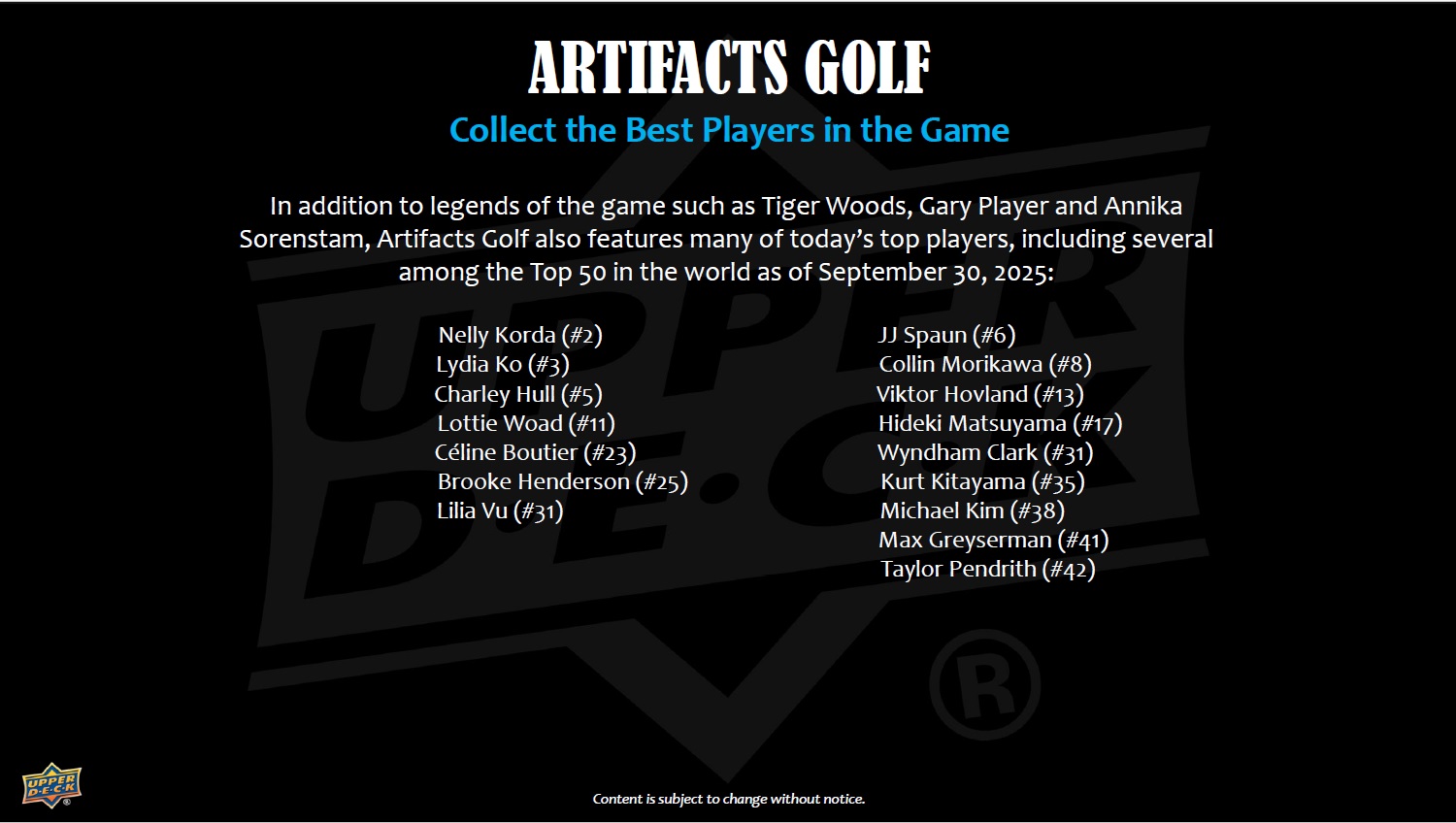 Artifacts® Golf returns to the golf portfolio, featuring a loaded 90-card base set that breaks down as follows (subject to change):