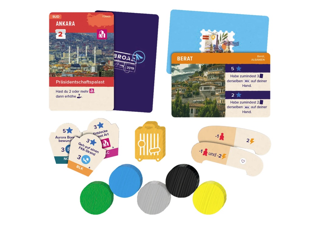 Zugänglicher Karten-Tableau-Builder mit Kombo-Effekten Innovativer Mechanismus - Die perfekte Mischung aus Planung und Interaktion Ansprechendes Reise-Thema - fast 300 Reiseziele Viel Spieltiefe in kompakter Spielzeit Abroad ist ein strategisches Reisespiel, das dich auf einen spannenden Trip durch Europa entführt. In 28 Tagen bereist du faszinierende Regionen, sammelst Postkarten, entdeckst Geheimtipps und besuchst Festivals – alles im Wettstreit um den besten Reiseverlauf. Plane deine Route clever, nutze deine Zeit taktisch und erfülle Ziele, um möglichst viele Punkte zu sammeln. Wer am Ende die beste Kombination aus Planung, Flexibilität und Entdeckungsglück vorweisen kann, gewinnt – und wird zum offiziellen Reiseexperten Europas!