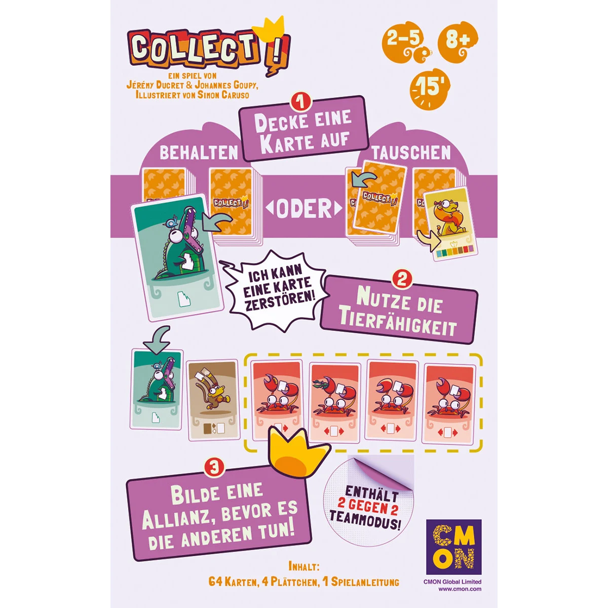 Mit einer Spieldauer von rund 15 Minuten ist Collect! ideal für Familien, Spielrunden zwischendurch oder als schnelles Strategiespiel.