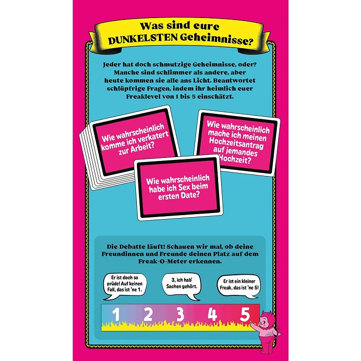 Beim schlüpfrigen Partyspiel Du kleiner Freak lernt ihr gegenseitig eure schmutzigsten Geheimnisse kennen.