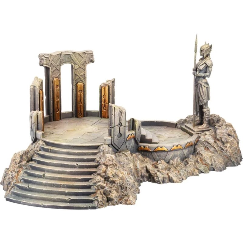 Das Geländeset Asgardian Shrine für das Miniaturenspiel Marvel: Crisis Protocol fügt eurem Team ein eindrucksvolles Geländeteil aus dem Lande Asgards hinzu. Die Statue wurde mit äußerster Sorgfalt und Liebe zum Detail gefertigt. Sie stellt eine Figur von Stärke, Schönheit und unerschütterlicher Entschlossenheit dar. Sie hat einen stolzen Platz in der Gesamtstruktur und zeigt die Bedeutung der Krieger in der asgardischen Gesellschaft. Sie wacht sorgfältig über diejenigen, die sich in ihrem Schrein aufhalten. Obwohl sie als von ihrem Volk vergöttert wird, dient sie ihm und Asgard. Zum Spielen wird ein Grundspiel von Marvel: Crisis Protocol benötigt.
