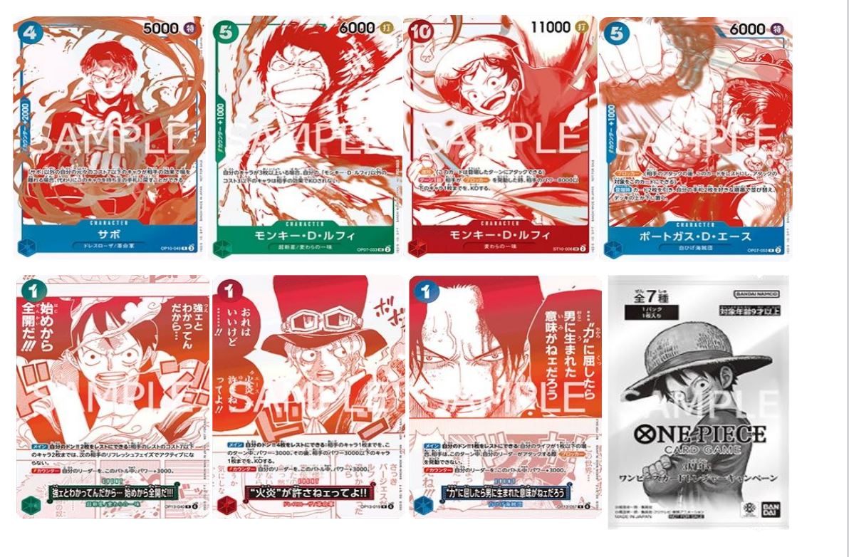 Zu jedem Display gibt es ein 3rd Anniversary! One Piece Card Treasure Campaign Pack (enthält 1 von 7 verschiedenen Promo-Cards) gratis!