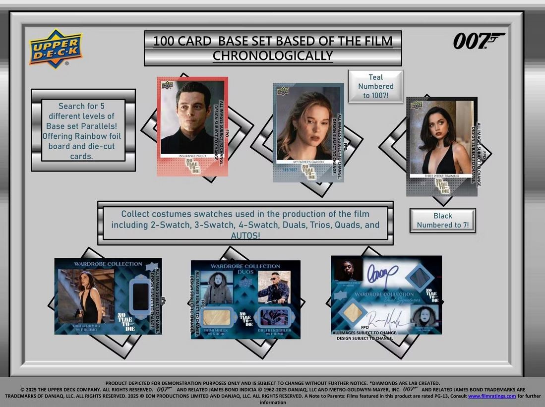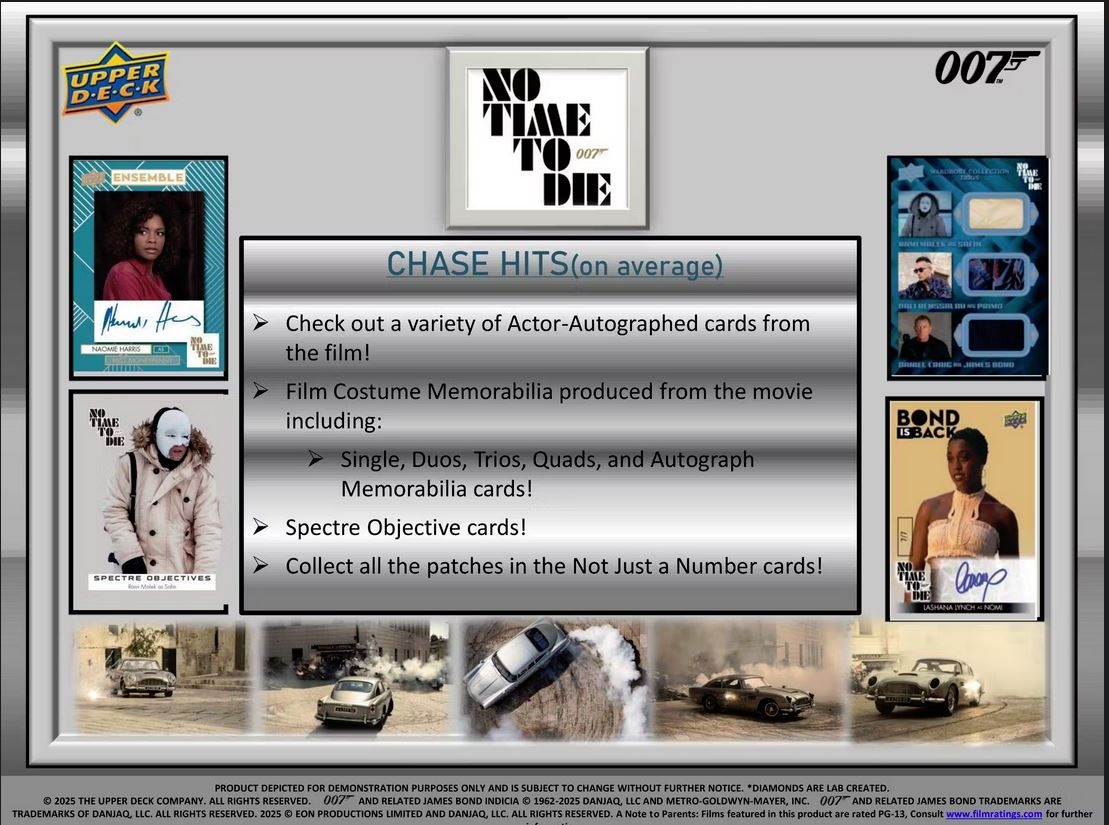 Upper Deck is thrilled to announce the return of Daniel Craig in his last James Bond movie - ‘No Time To Die’. The 25th James Bond movie has given us exciting screen costume pieces from the production of the film and high-quality images that follow along with one of the biggest Bond movies ever to be included in our trading card sets. Search for the ultimate chase cards with low-numbered parallels and impressive talent-autographed cards!