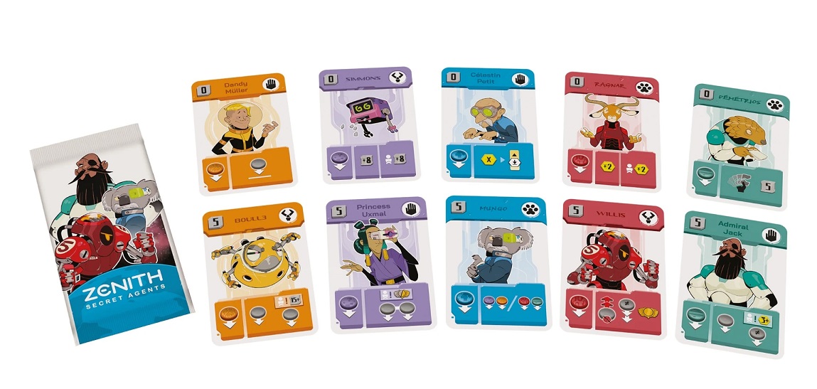 Secret Agents ist eine Erweiterung zum Kennerspiel Zenith. Die Erweiterung enthält 10 neue Diplomatenkarten. Diese bringen neue strategische Möglichkeiten, da sie teilweise nur 0 Kredite kosten oder sich auf die Auslage der Gegner beziehen.